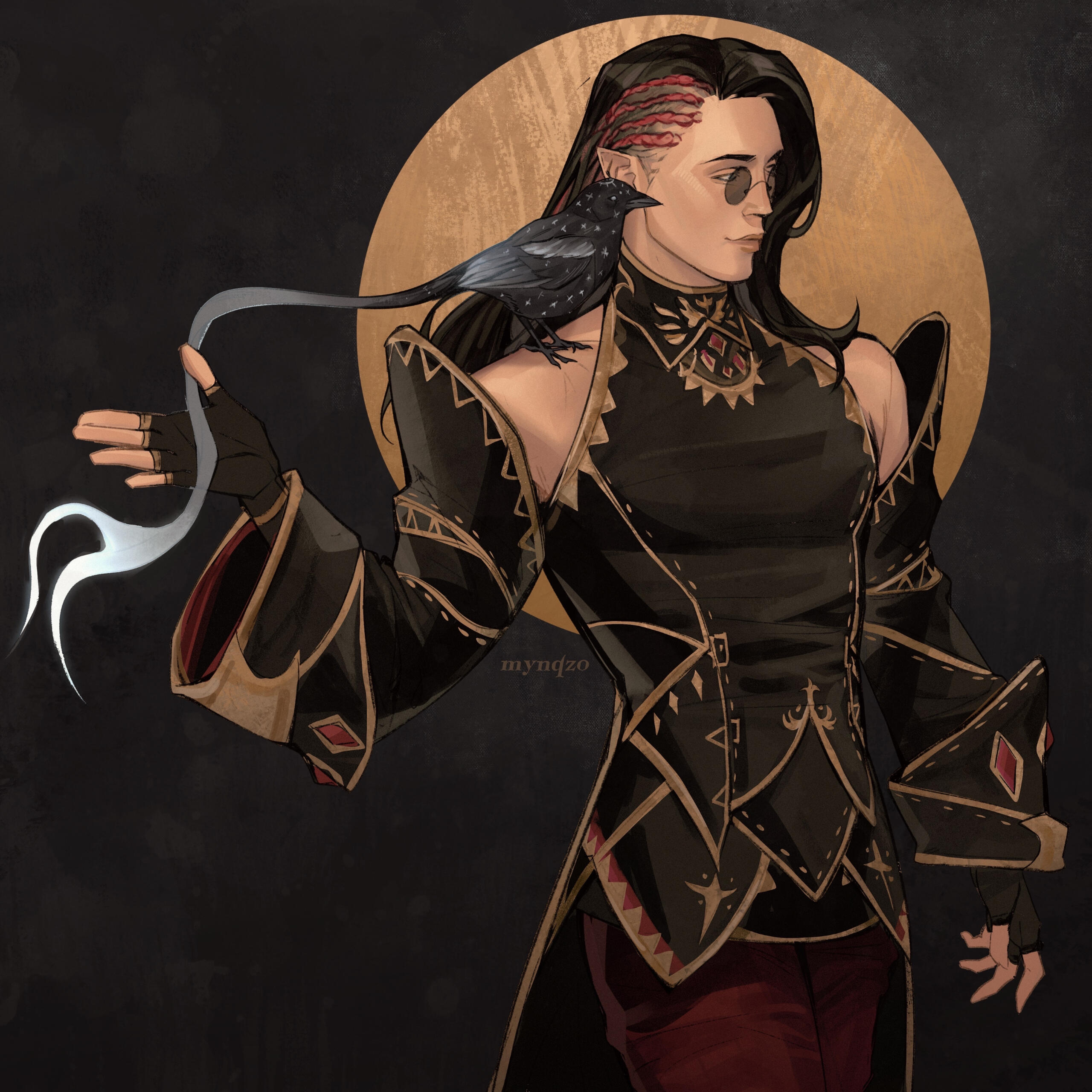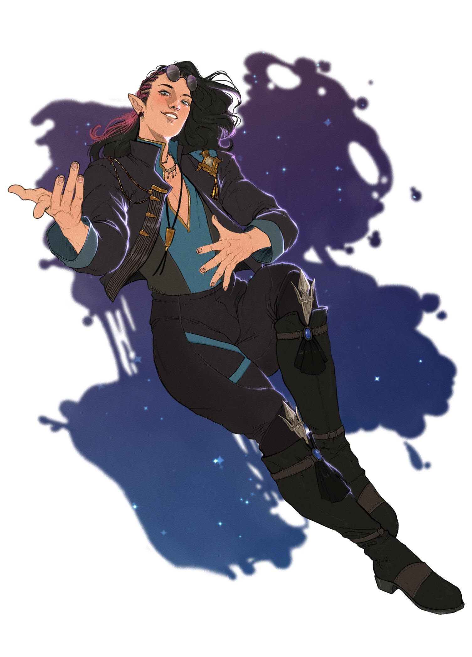 it's not all rainbows and unicorns, though. rael is as flawed as they come and he makes mistakes. frequently. they can come off as a know-it-all, especially when it comes to magick and spellcraft. rael has a nasty habit of thinking people don't understand as much as he does, and surely they need a lesson in it all. That, or he dismisses intelligence in forms he doesn't have experience with directly, such as folk or tribal magicks. another flaw is judging people on how useful they can be and how well they're willing to listen to his brilliant ideas. once rael feels slighted or unappreciated, his attitude takes a nosedive.what lies beyond the masks, though? difficult to say. based on his verbosity, it's clear that the magician cares a great deal about a great many things. his talent for magick, for starters. Technology, societal advancements, history, trinkets and artifacts, current events, the list goes on. However, all of those things, the chatter, the debate, the annoying impulse to rile up those he opposes, seems to be a smokescreen. a projection of insecurity? a deep, unconscious fear of ...something? probably both. will he have a heart-to-heart with you to figure it out? definitely not. but...you never know.